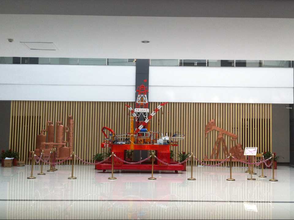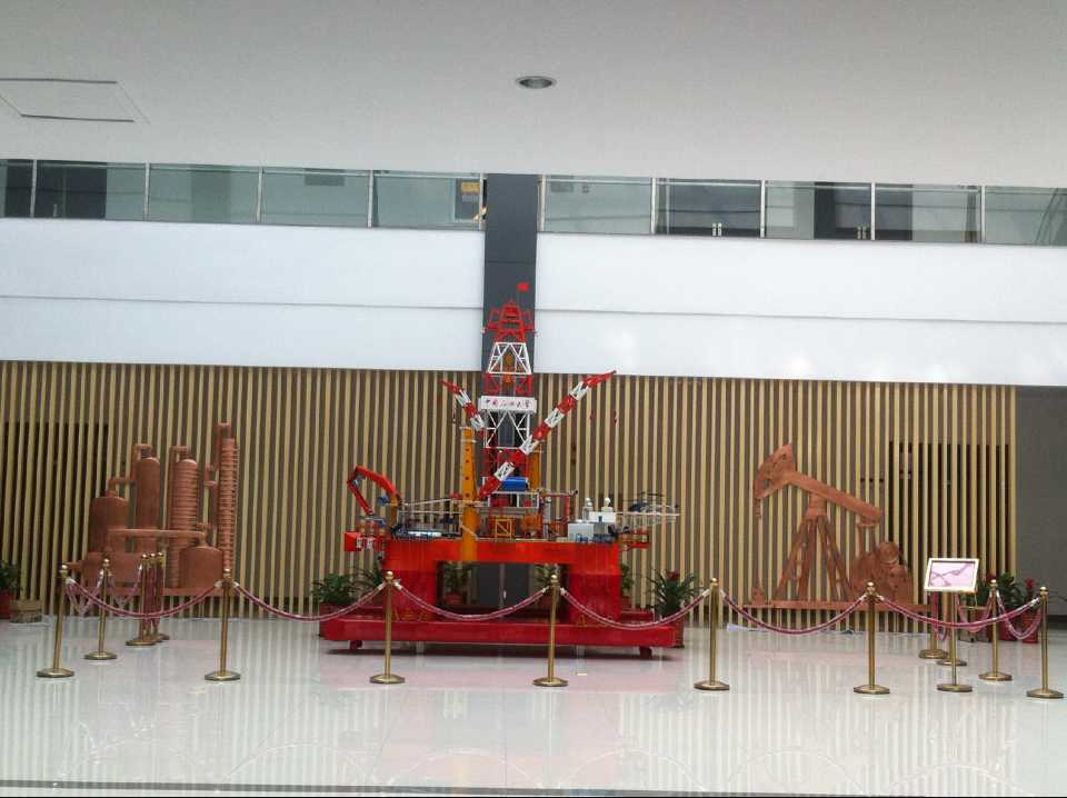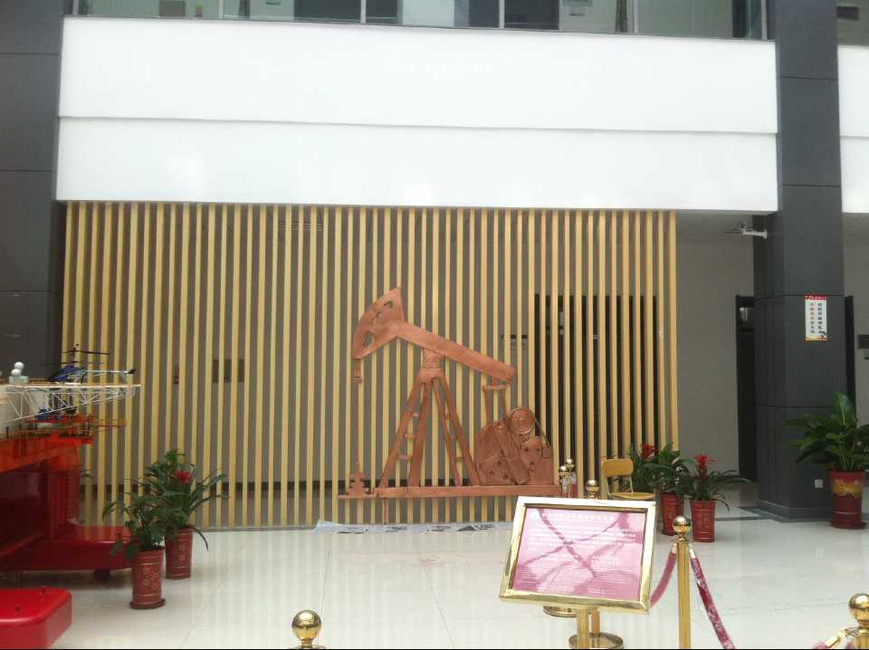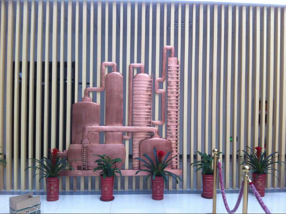 抽油機(jī)及化工廠鍛銅浮雕,2015年10月23日安裝于中國石油大學(xué)華東分校(青島市黃島區(qū))。材質(zhì):紫銅板。工藝:手工鍛銅。高:2.19米。