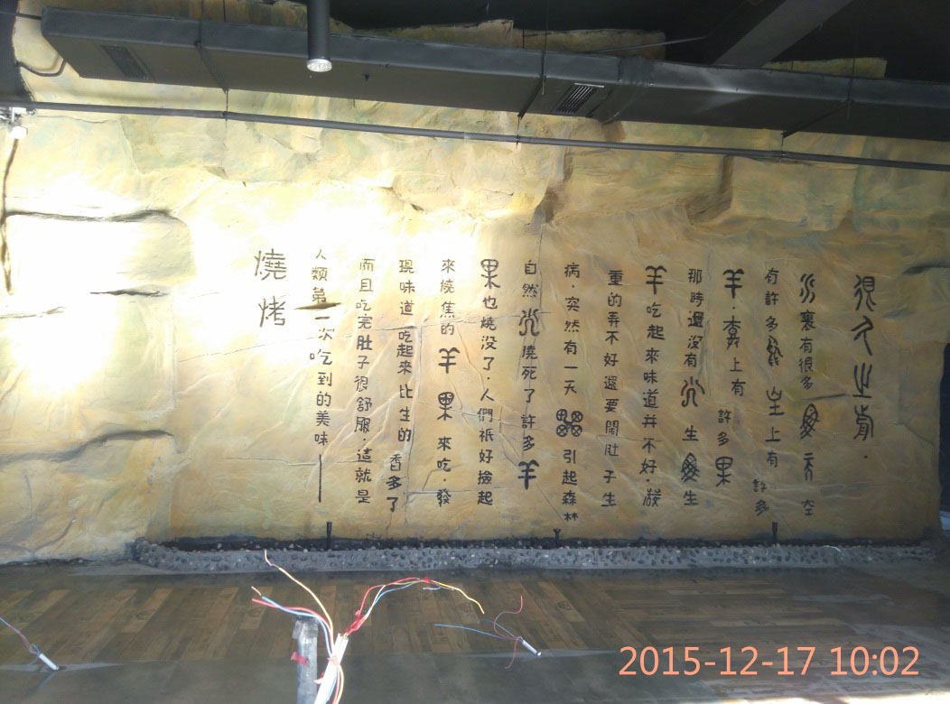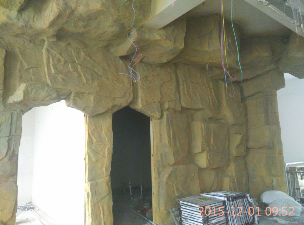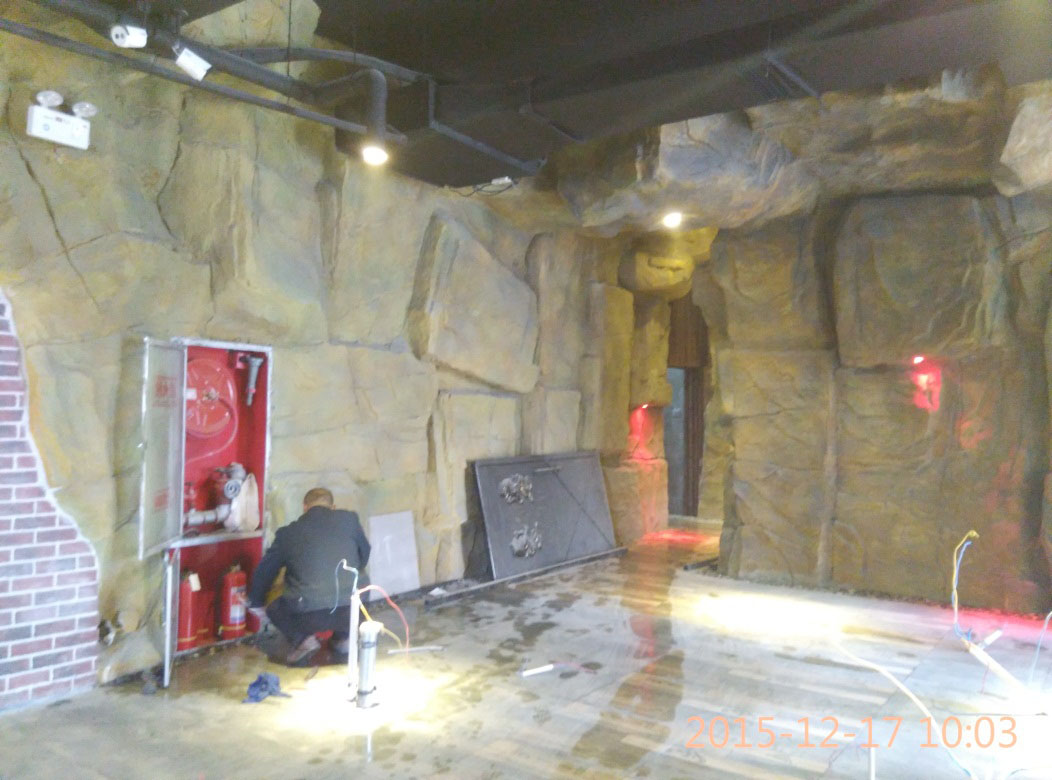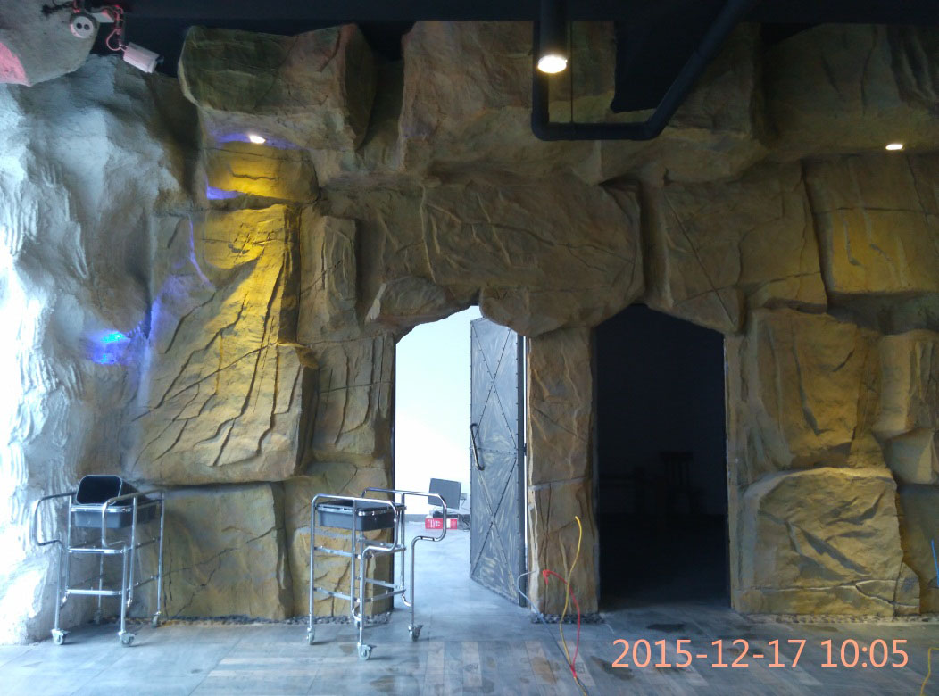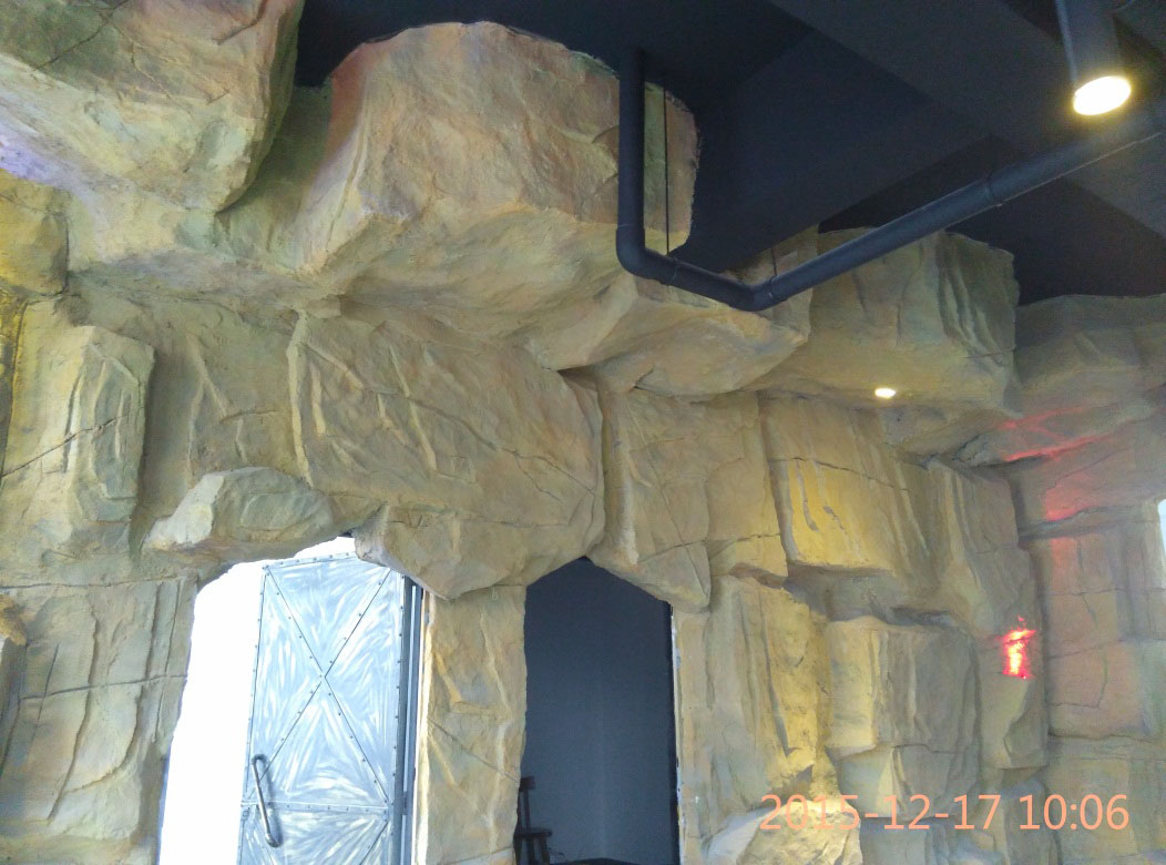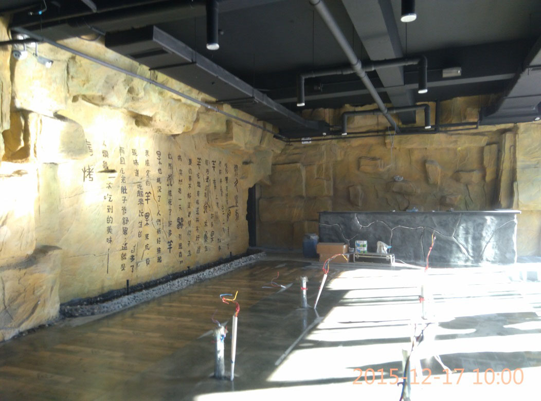 本項目從2015年10月28日開始施工,截止2015年12月6日順利竣工。地址位于濱州市黃河六路渤海十八路西200米路北。室內(nèi)假山裝飾部分,分為巖石假山、仿鐘乳石假山、仿溶洞效果三種風格。現(xiàn)為濱州市唯一一家大型原生態(tài)風格自助室內(nèi)燒烤城。