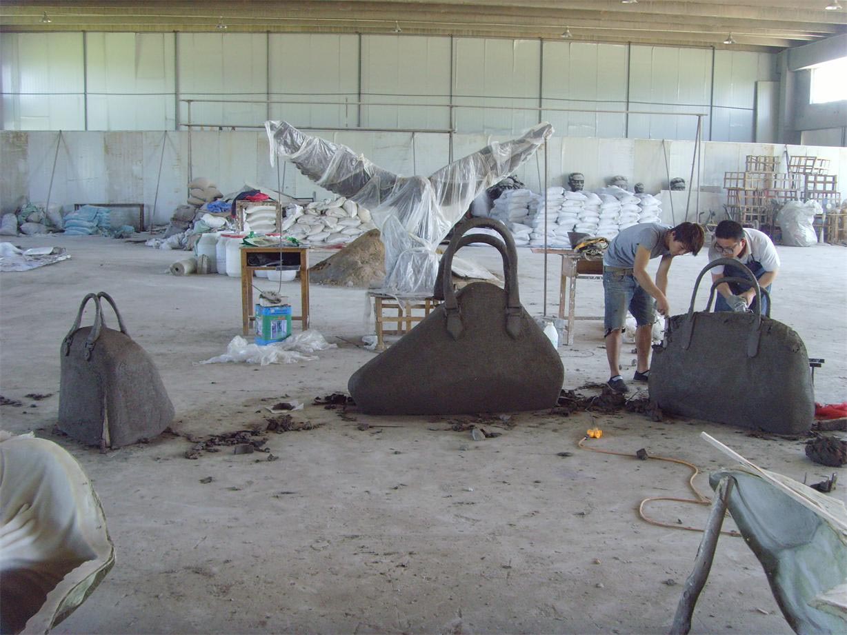 hj1709 箱包雕塑泥塑_青島國際服裝城不銹鋼雕塑、石雕、玻璃鋼雕塑_濱州宏景雕塑有限公司