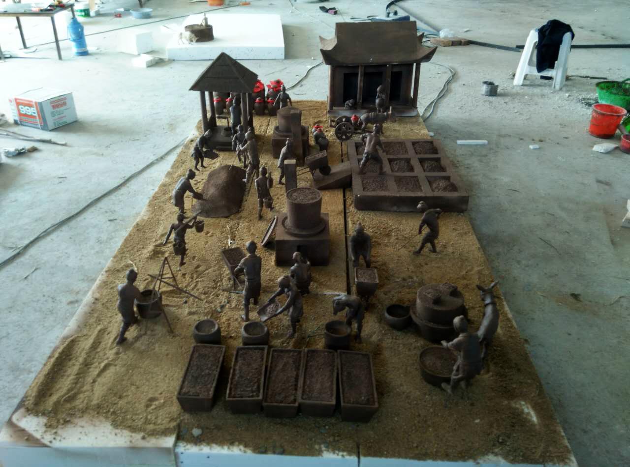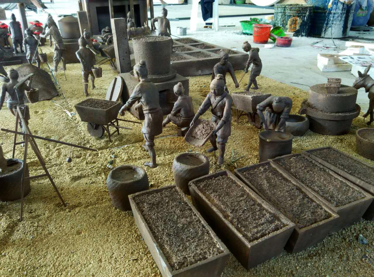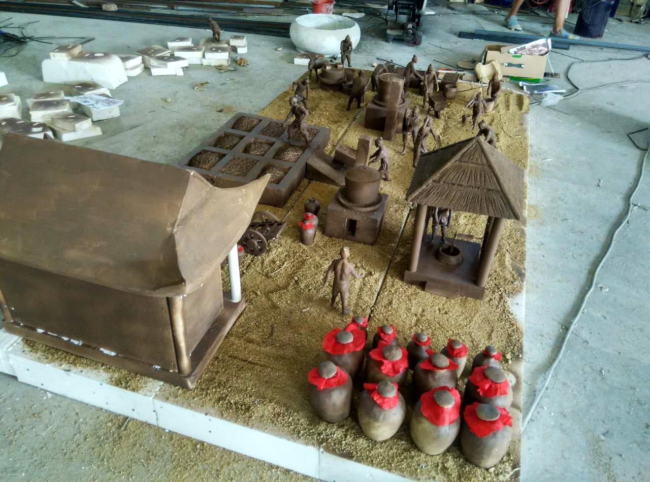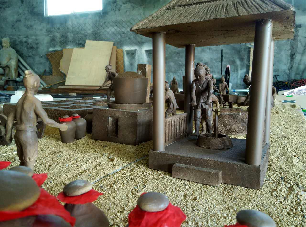 作品名稱:古法釀酒場景式群雕、古法榨油群雕。