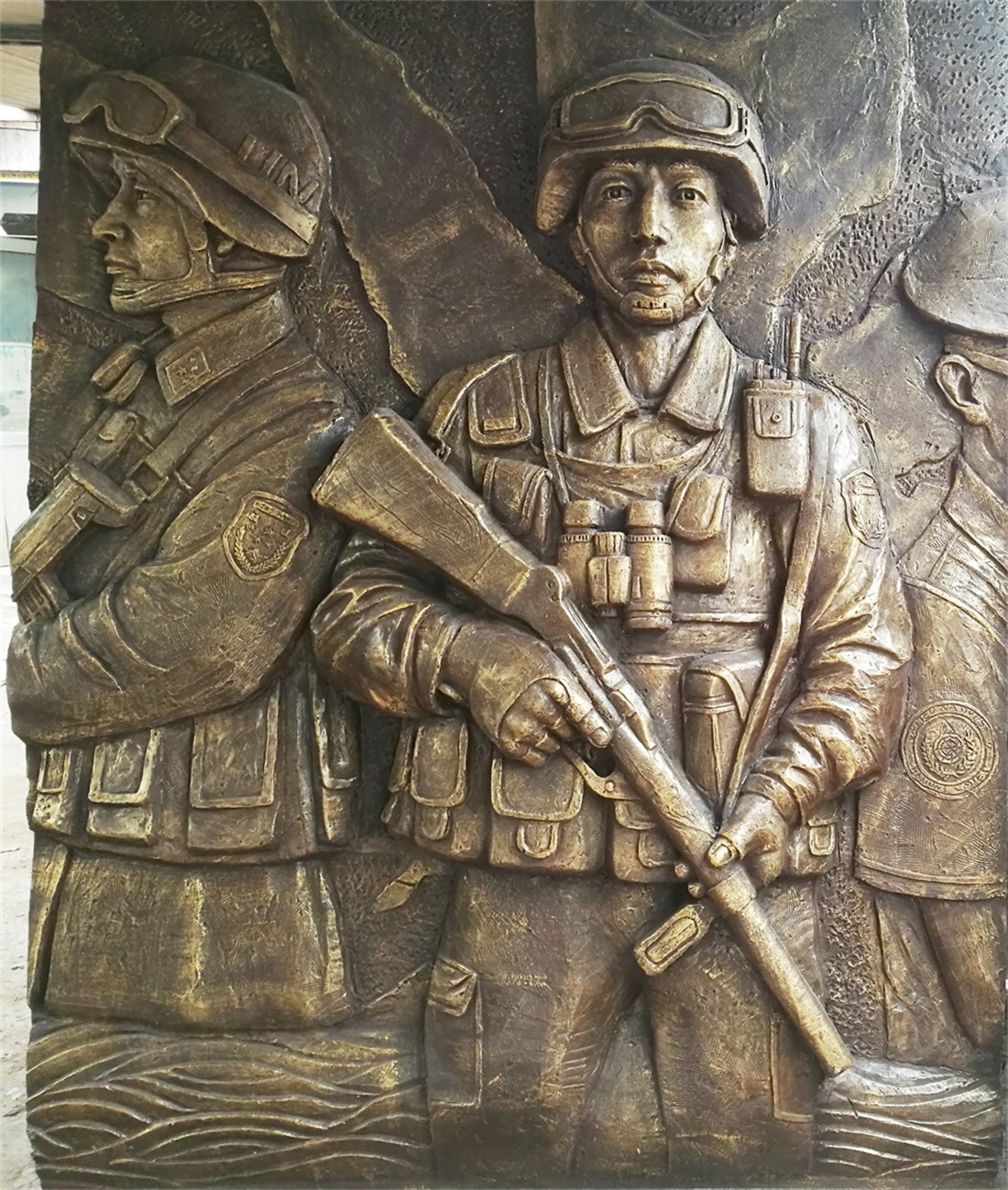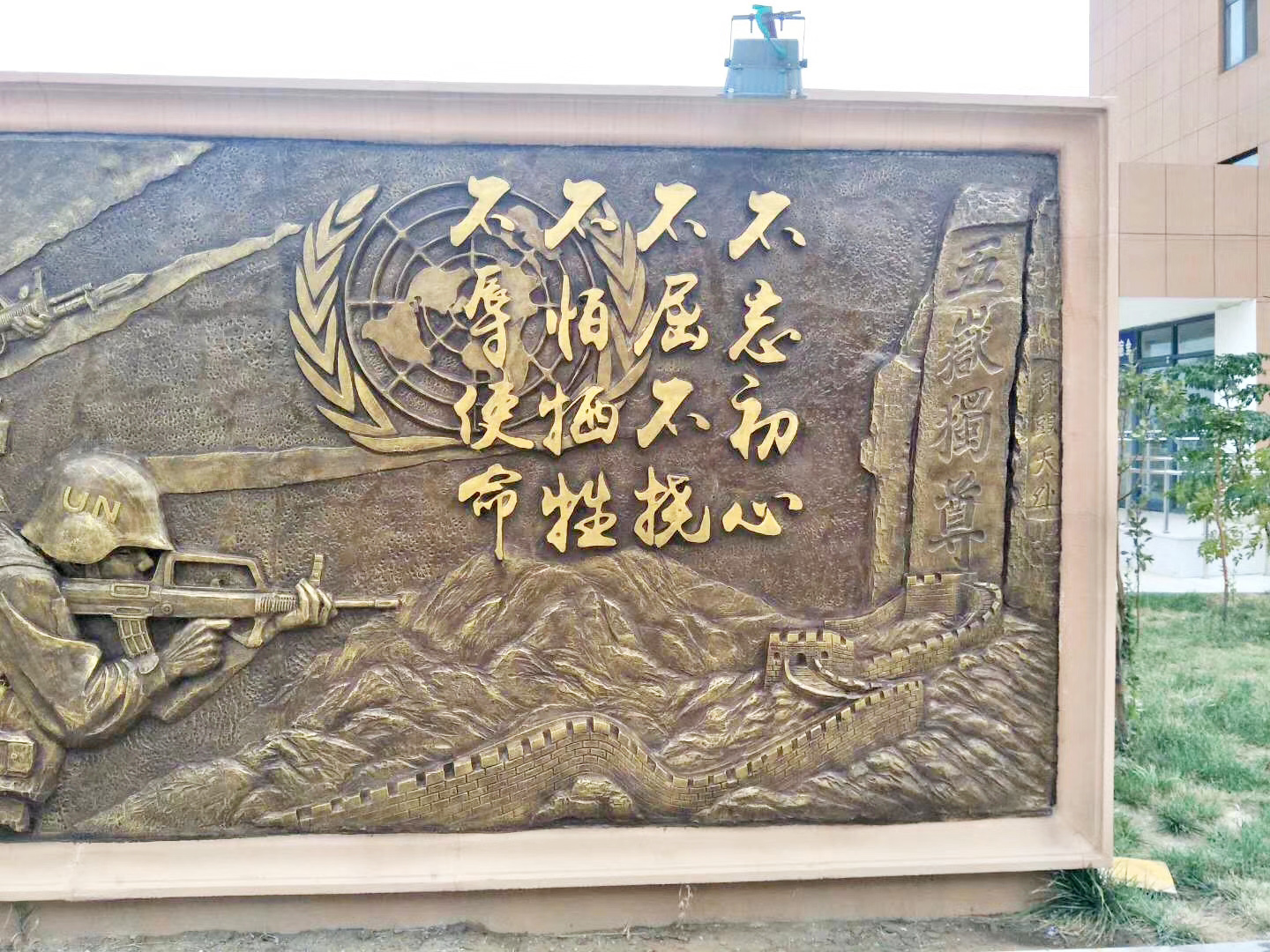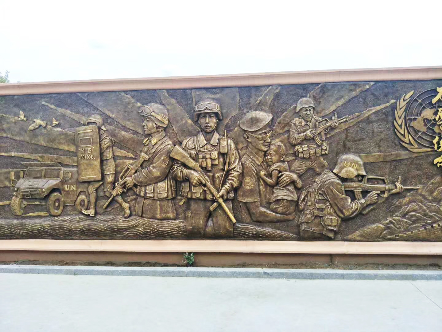 大型部隊(duì)維和題材的玻璃鋼浮雕施工完畢。