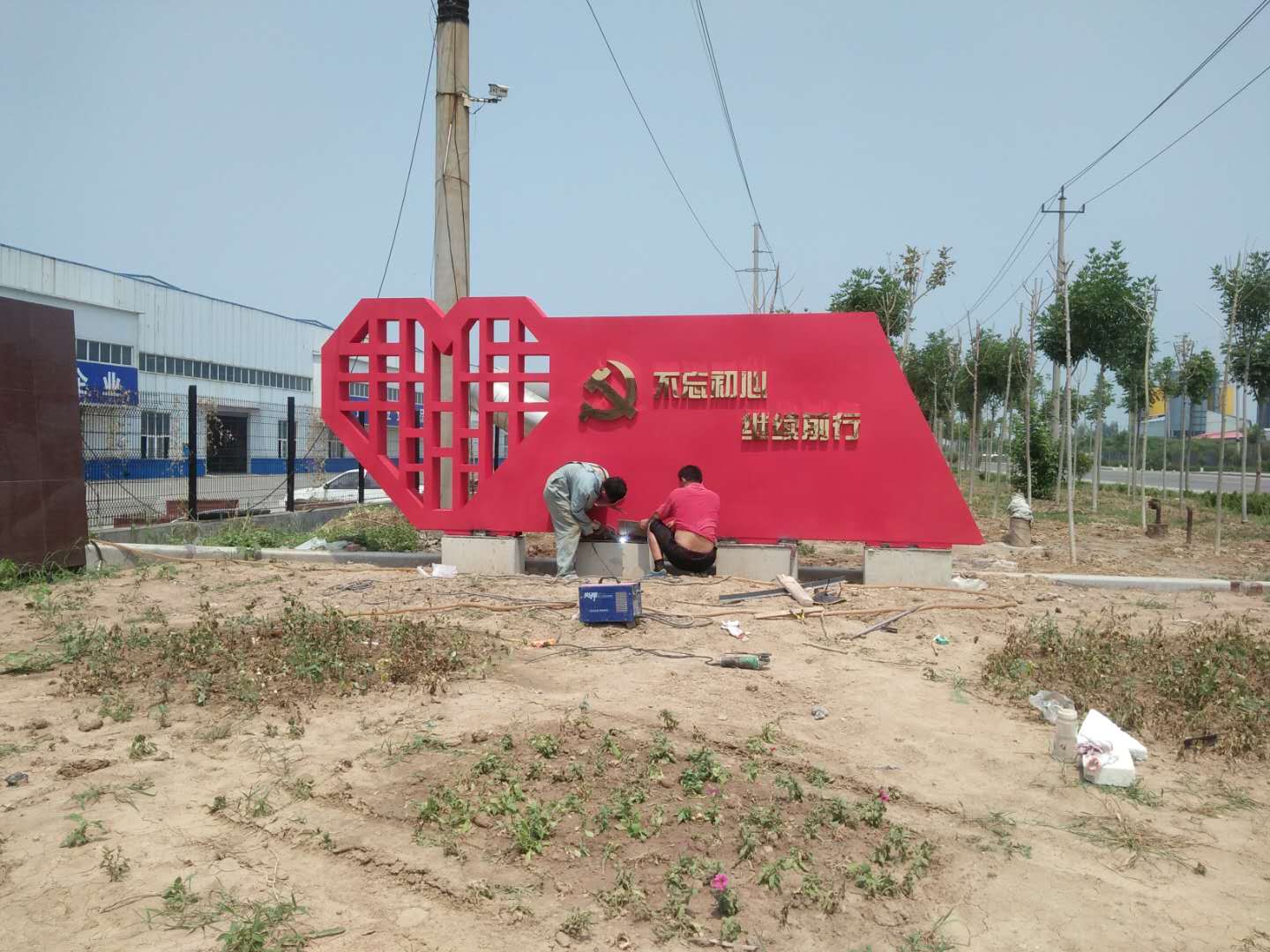 1、雕塑材質(zhì):表層2mm厚鍍鋅板,內(nèi)置金屬骨架并做防腐處理,表面噴涂氟碳漆。文字及黨徽為鈦金字。